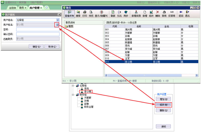 如果用户管理中存在的用户,没有实际的职员与之对应,需要先建立职员档案,手机号为必录信息。