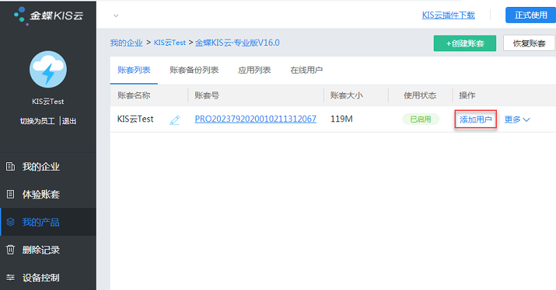 以客户真实的企业管理员账号身份登录KIS云管理中心,选择正确的企业、产品,然后完成以下处理。