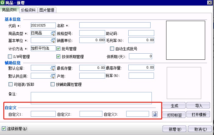 单击右上角[基础资料]-[商品]-[商品],选择具体的商品,维护好[自定义]属性。