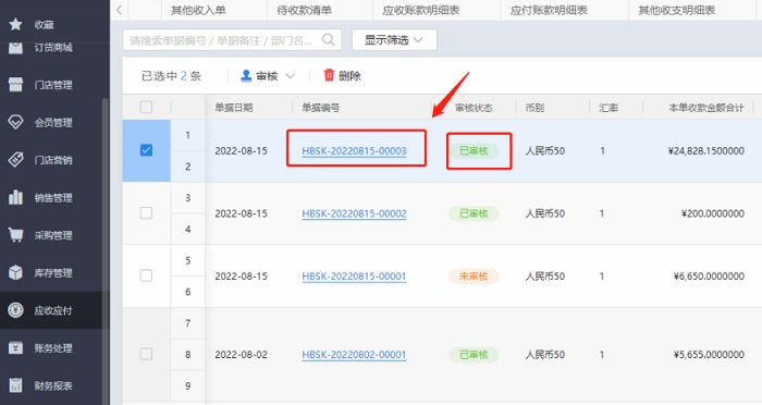 审核合并收款单之后系统会自动生成多笔客户收款单