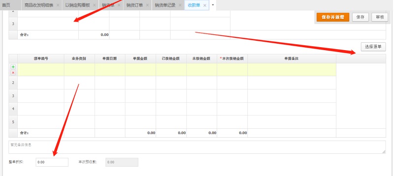 新增一张收款单,通过选源单的方式关联好单据,其中收款为0 ,金额填到整单折扣,相对于优惠了掉了。即可