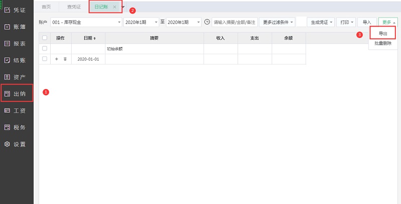 目前日记账仅支持一期一期导出,暂不支持一次性导出全部日记账哦。
