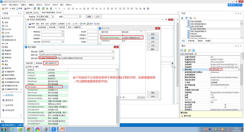 BOS --采购订单新变更单--操作列表 --生效操作无需更新的字段列表 --编辑 。