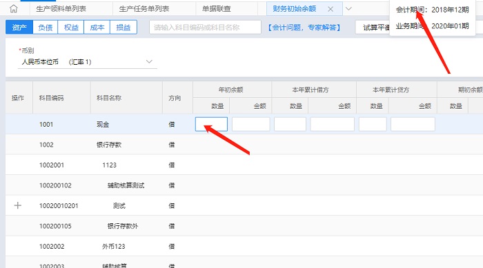 为什么财务初始余额保存框是灰色的无法录入?