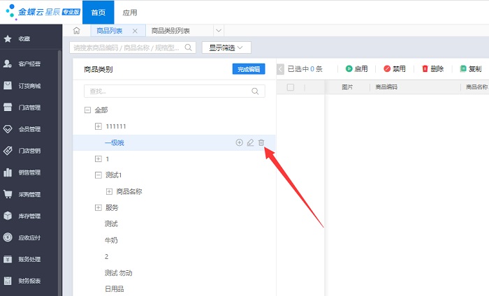 1、不能越级删除商品类别,需要先把下级明细的商品类别先删除了。