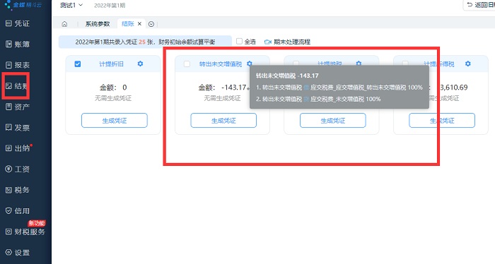 在结账页面根据取数规则自动生成(非必要生成凭证,企业可根据自身情况生成凭证)