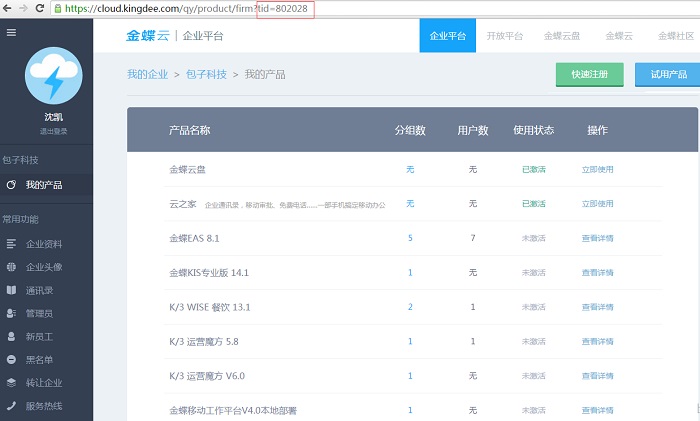 1.登录金蝶云企业平台