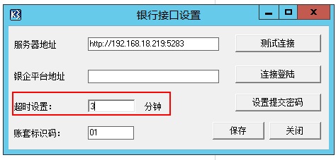 由于系统需要在K3、银企平台、银行前置机三者之间进行沟通,所以需要设置一个超时时间。