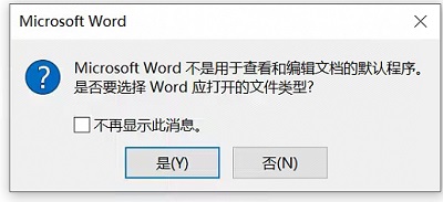 3、确保默认打开doc的程序是word,可在桌面新建一个.doc文档,设置打开方式为word,并勾选为默认打开应用。如设置默认应用后,仍提示如图,请勾选不再提示,并选择是完成即可。