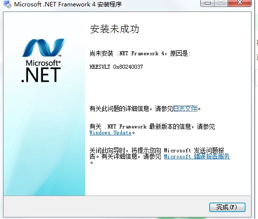 microsoft .net framework 4 安装未成功,原因是:hresult 0x80240037