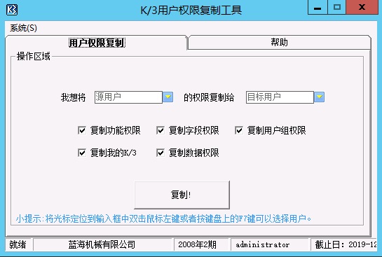 1、将“K/3用户权限复制工具”下载并解压运行;