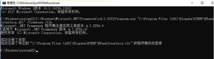 C:\Windows\Microsoft.NET\Framework\v4.0.30319\regasm.exe C:\Program Files (x86)\Kingdee\K3ERP\EBankInterface.dll /Codebase /tlb