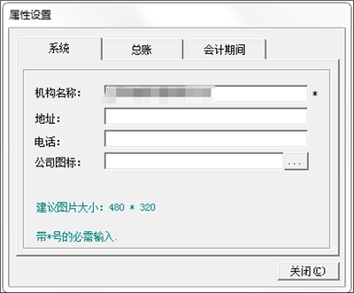 在“属性设置”窗口中包含三个标签页,分别是“系统”、“总账”和“会计期间”: