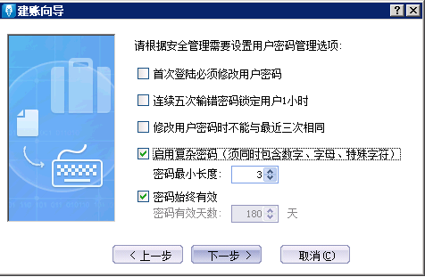 【概述】 因为新建账套的时候默认会勾选启用复杂密码,密码最小长度为3