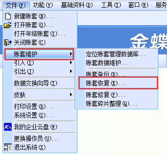 1、单击[文件]-[账套维护]-[账套恢复]选择备份文件单击[打开];