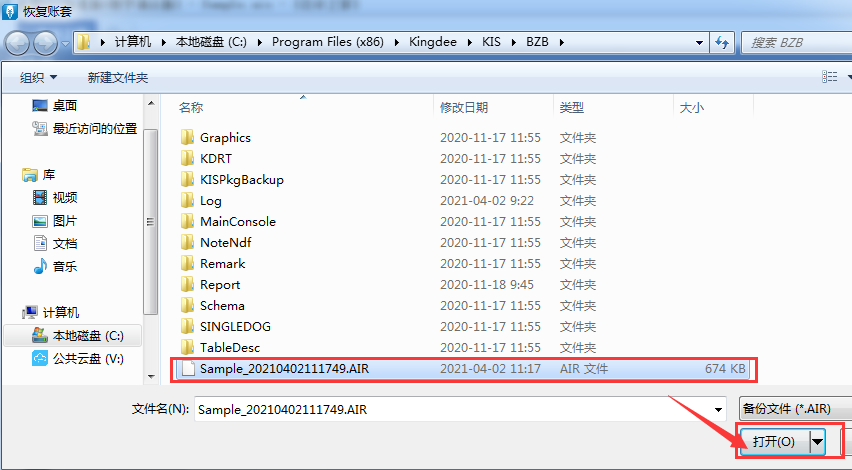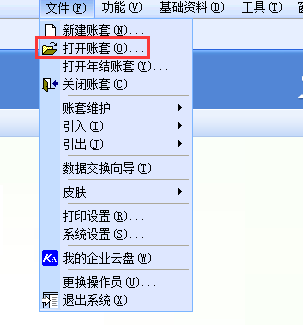3、单击[文件]-[打开账套]找到保存的账套文件单击[打开]。