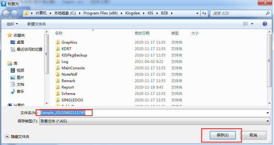 2、修改账套文件名称以及存放路径单击[保存];
