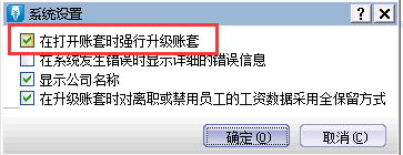 备份账套后,点击[文件]-[系统设置]-勾选[在打开账套是强行升级]-重新打开账套即可。
