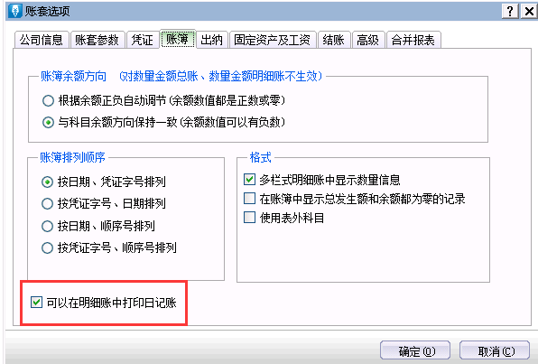 打开[系统维护]-[账套选项]-[账簿]页签中,勾选参数“可以在明细账中打印日记账”。