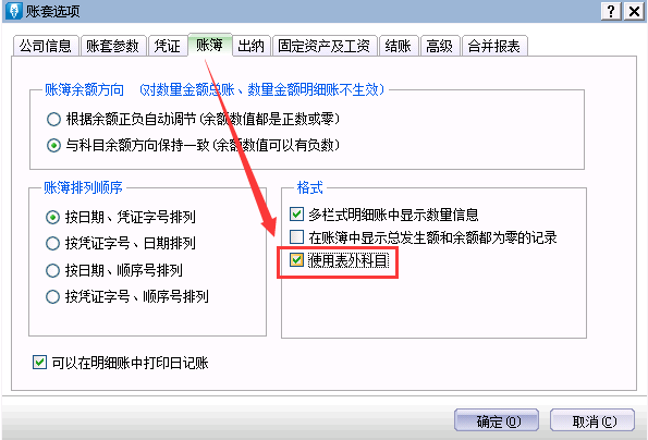 [账套选项]-[账簿]-[格式]-勾选[使用表外科目]参数,在增加科目时可选到此类别。