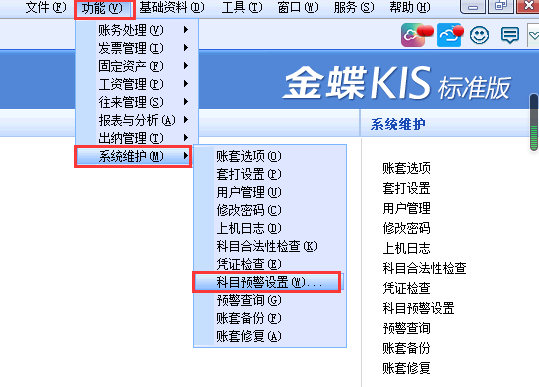 2、单击[系统维护]-[科目预警设置]-增加科目预警定义-设置科目金额范围。