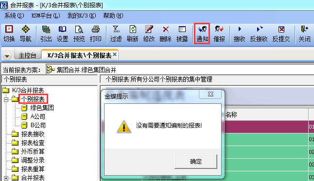 该功能是指发送邮件通知子公司对未编制的报表进行编制,而系统预设过滤条件中对于“未制”状态是未勾选的,因此会有此提示。如果需要使用该功能需要先在此界面点击工具栏[过滤],勾选“未制”状态点击[确定]后,然后再选择“未制”状态的报表,点击“通知”。