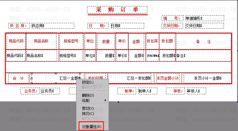 2、在套打设计器界面点击左上角打开图标打开对应模板,选中模板中汇总金额对应的文本框右击选择[对象属性]-[文本内容]将数字格式选择为RMBDX,保存对应模板;