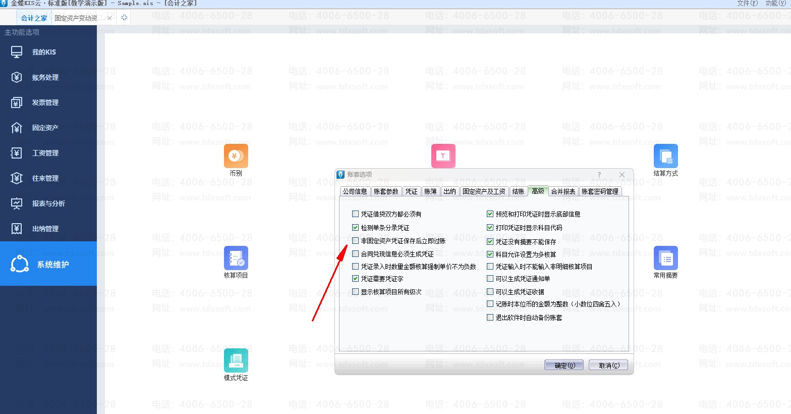 在主界面点击【系统维护】-【账套管理】-【高级】-【非固定资产凭证保存后立即过账】勾选。勾选参数后手工做凭证保存后可以自动过账。