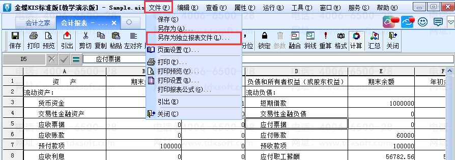 1、新建账套保持会计科目一致并且启用新账套。[利润表]或[资产负债表]另存为独立报表文件;