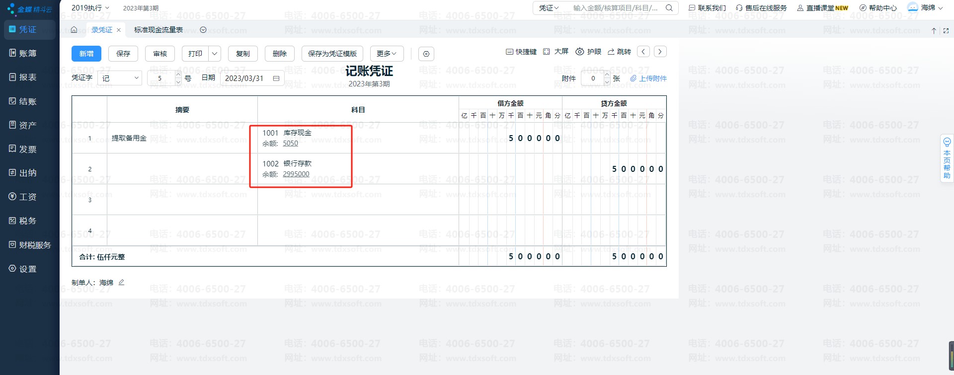 如图,凭证提取备用金,两个科目都是现金类科目: