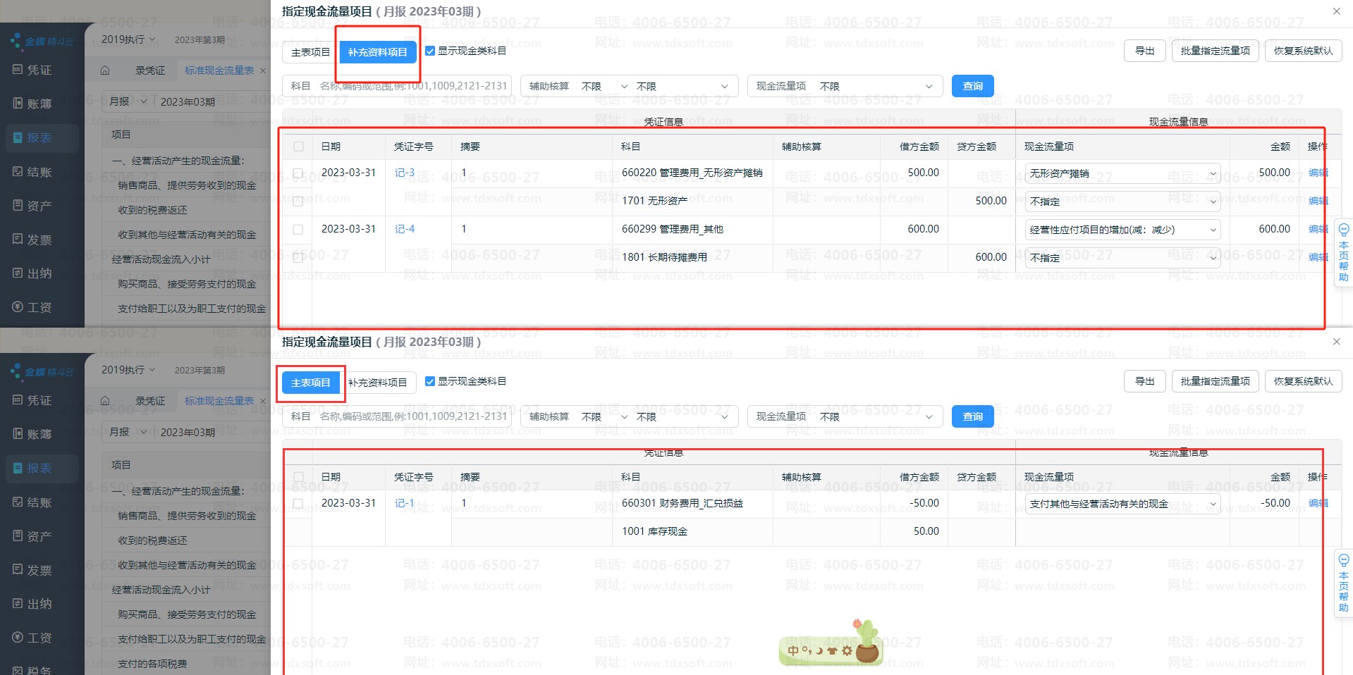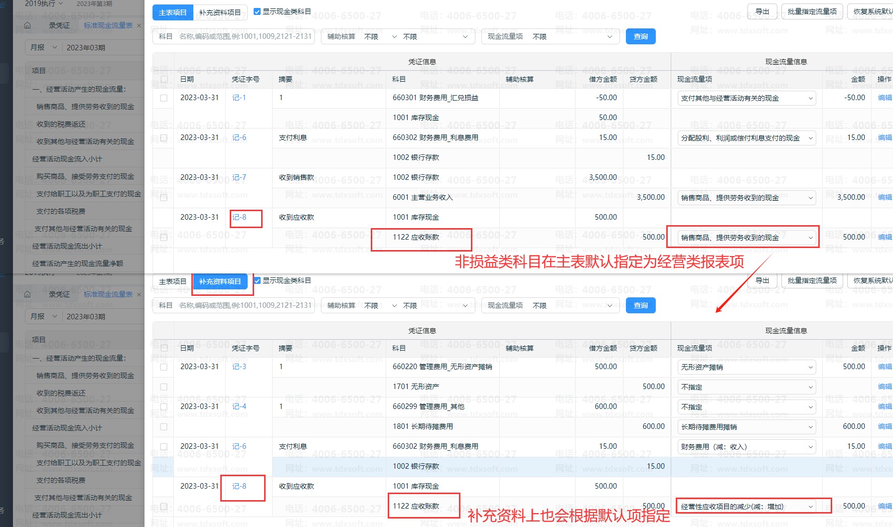 如图,当非损益科目在主表上被指定的是经营类报表项时,补充资料上也会被指定