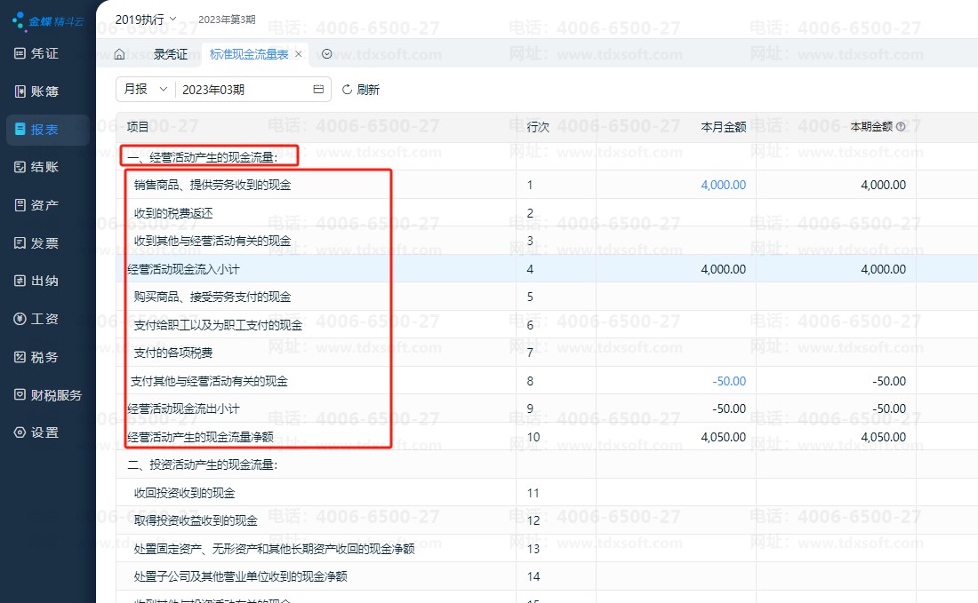 经营类的报表项指现金流量表上项目里的第一大项,如图: