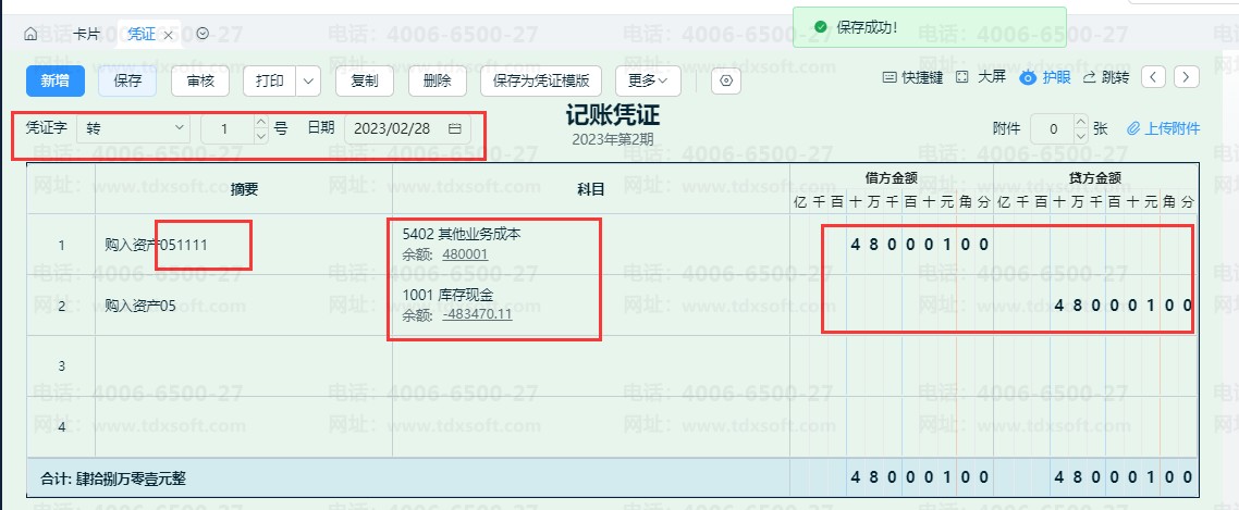注意:修改金额有可能导致总账与资产卡片的原值累计数不一致,一般不建议手工修改系统生成的凭证,可直接手工新增,不由系统生成。