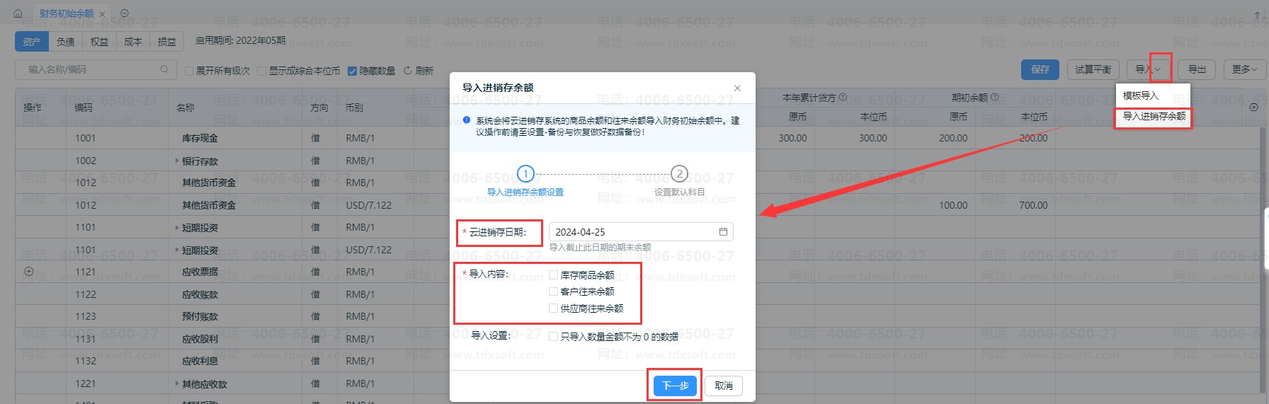 如何将进销存的基础资料导入到云会计?