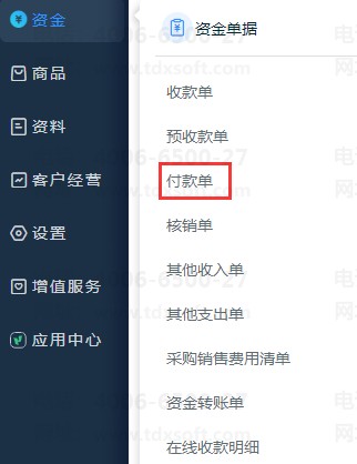 1、预付货款:【资金】-【付款单】
