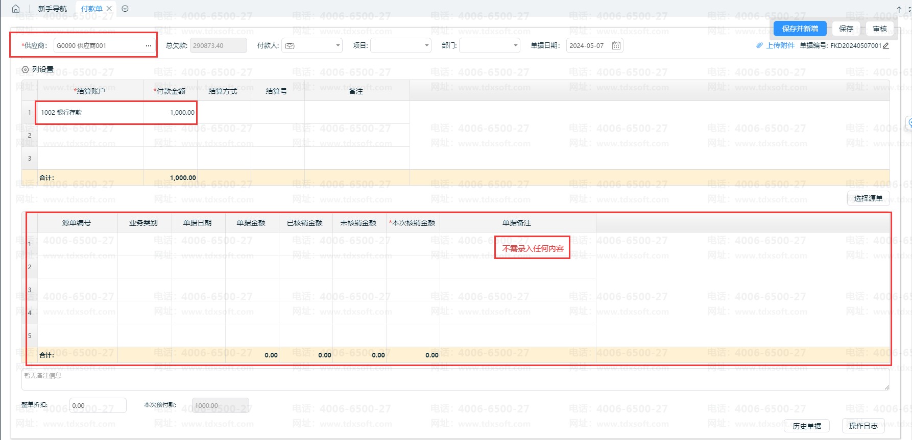 2、付款单不选源单