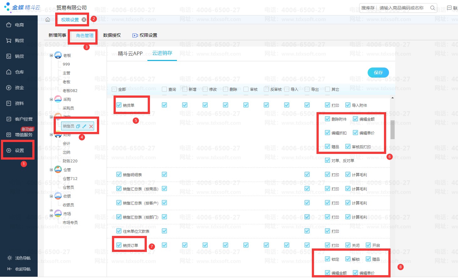 如未勾选,重新勾选并【保存】即可。然后子账号退出账号重新登录,则可授权成功。