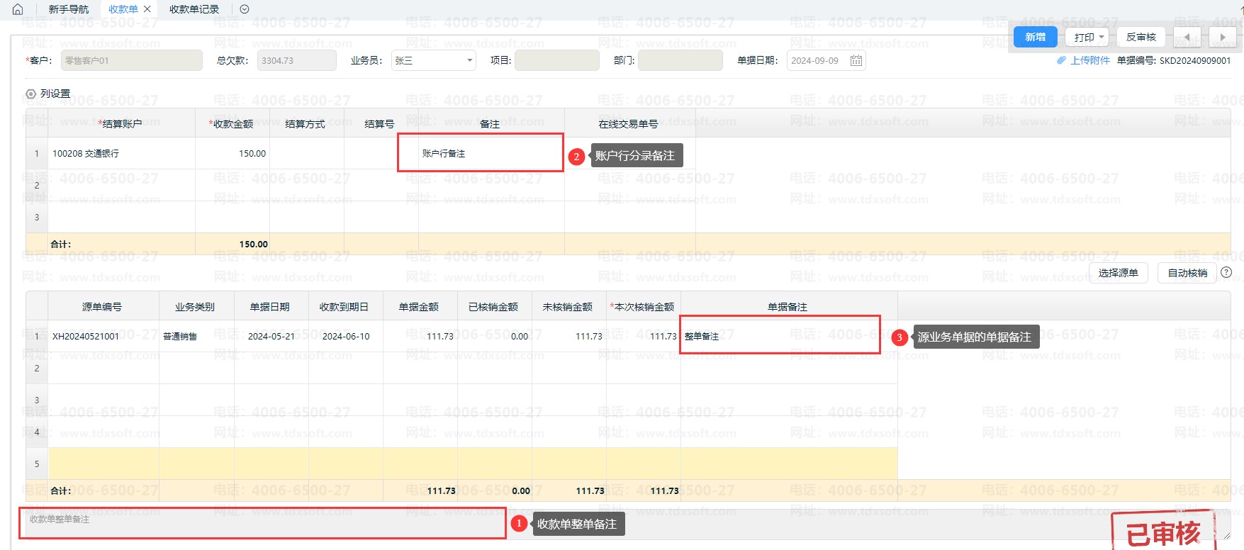 整单备注:是对整个单据的相关信息进行说明,针对的是一笔单据的整体情况说明。整单备注单据表尾。