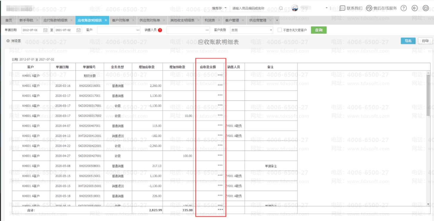 查询【应收账款明细表】、【客户对账单】、【客户管理】的应收款余额,【应付账款明细表】、【供应商对账单】、【供应商管理】的应付款余额时显示***?