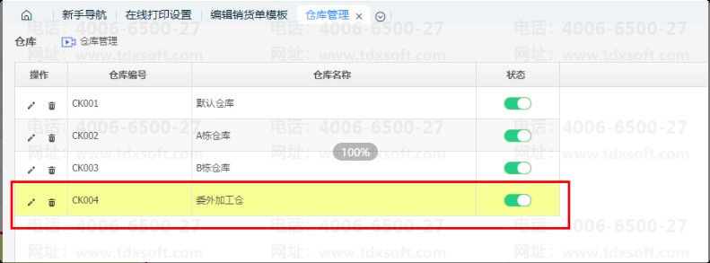 例如:在【资料】-【仓库管理】中建立一个“委外加工仓”。