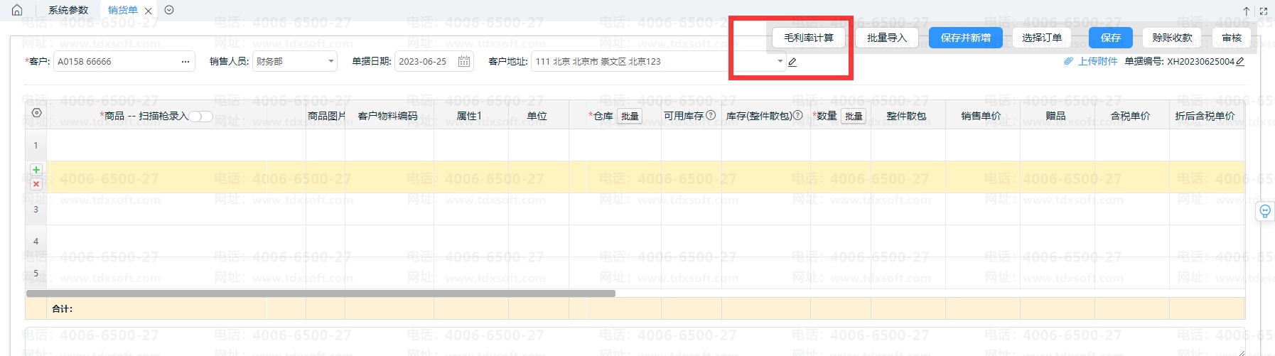 注意:参考成本取的是创建单据时的商品单位成本,后期不会随着商品单位成本的变化而自动变化,如需查看最新的参考成本,可点击毛利率计算按钮进行更新。
