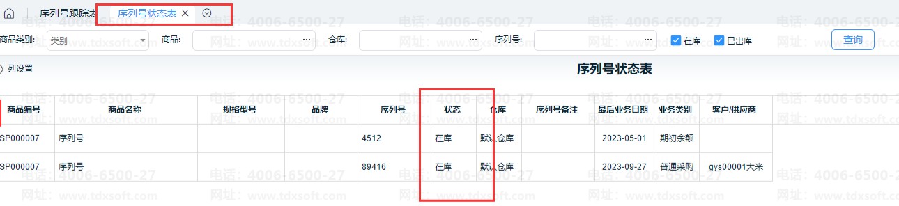②序列号状态表:统计序列号的当前在库状态