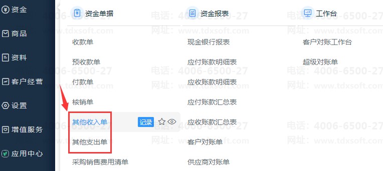 2、新增其他收入单、其他支出单