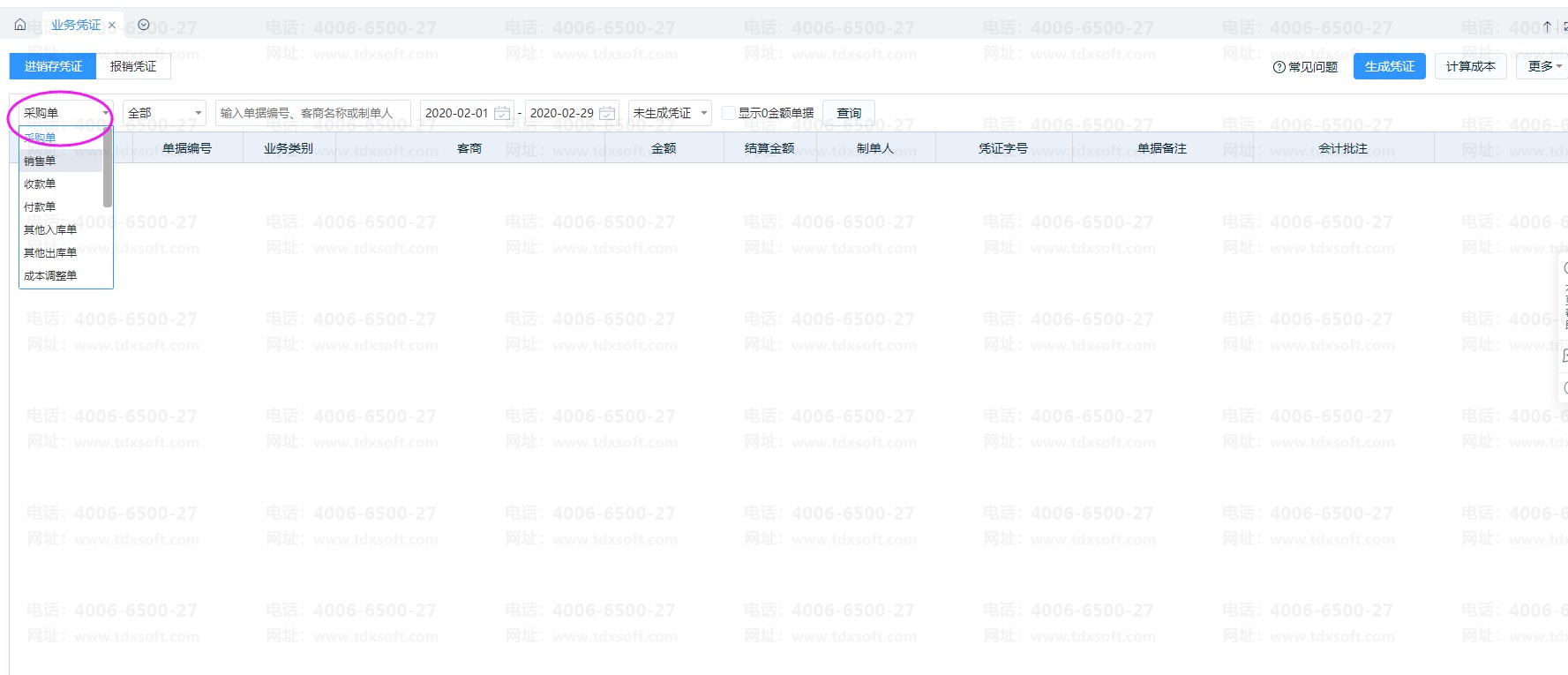 进销存结账后, 点击打开【云会计】-【凭证】-【业务凭证】界面