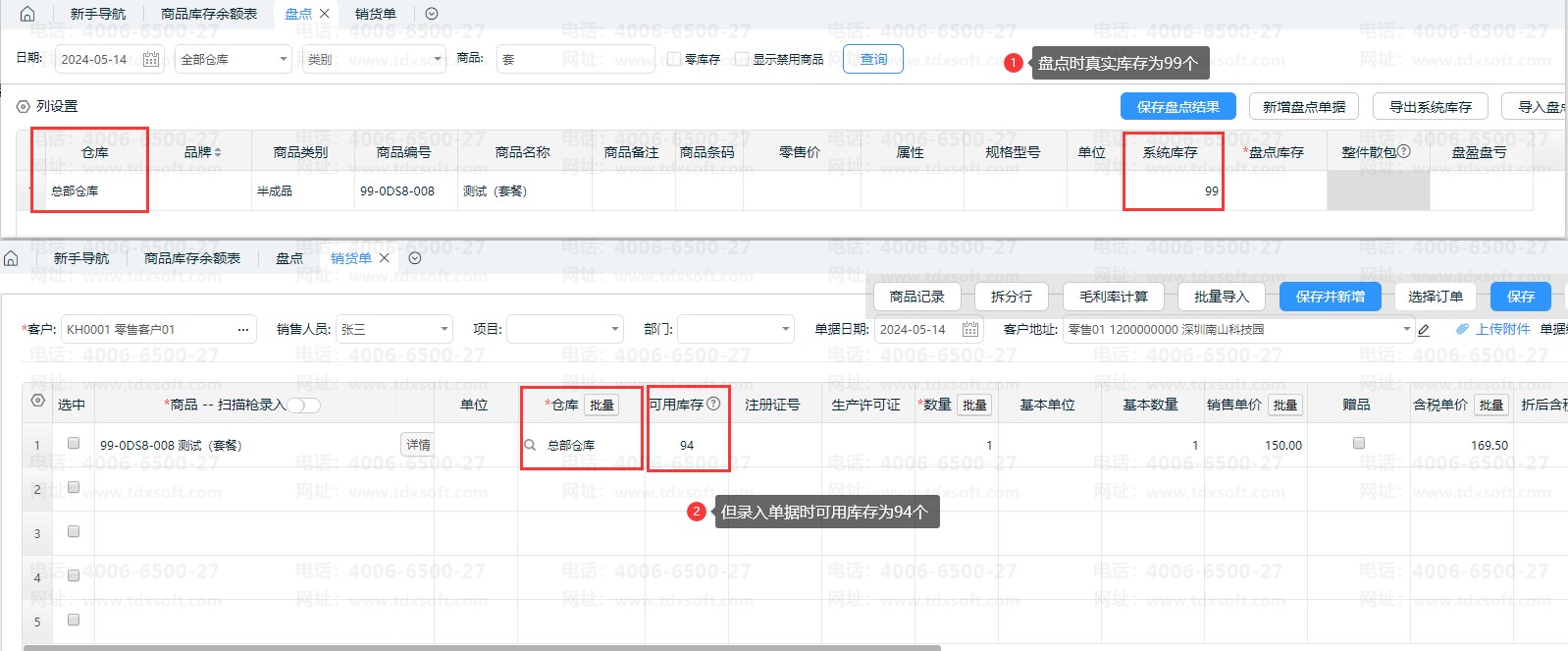 可用库存=实际库存-占用库存,查看销售订单是否锁库
