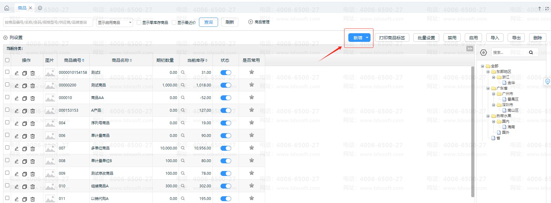 首先,在【商品】-【商品】界面右上角点击【新增】