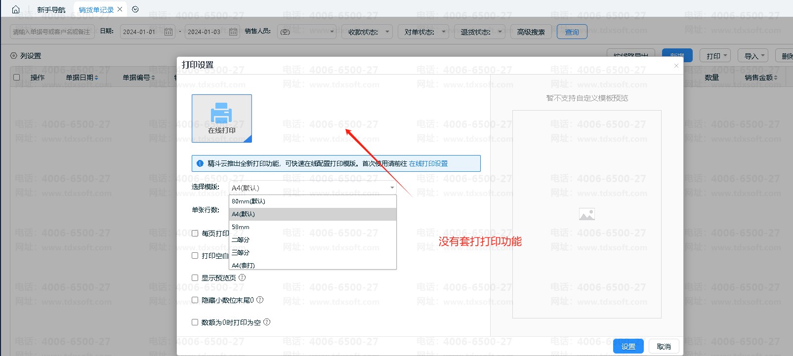 精斗云云进销存为什么打印设置里没有专业套打的选项