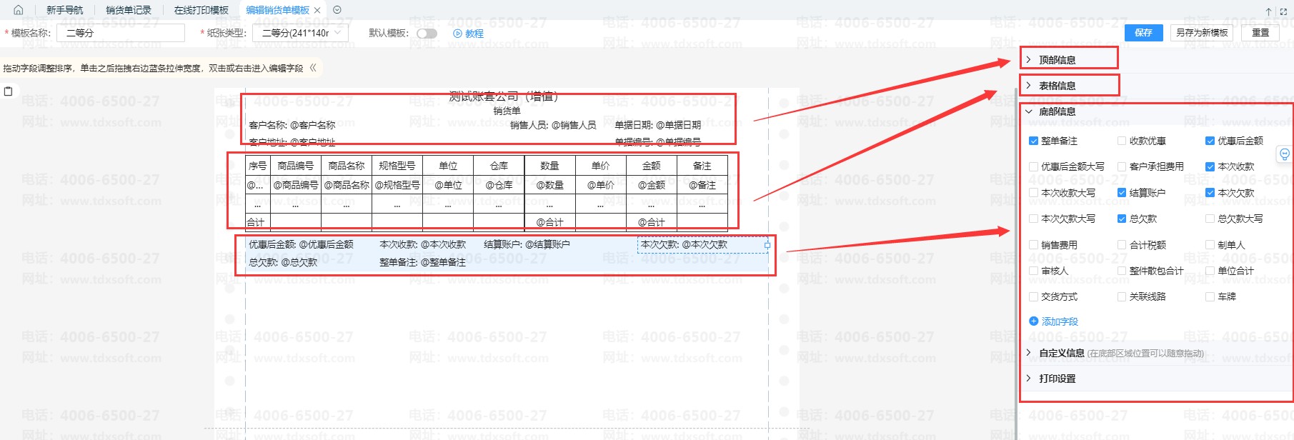 以销货单为例,点击【销货】-【销货单】,打开对应的模板进行编辑,如图: