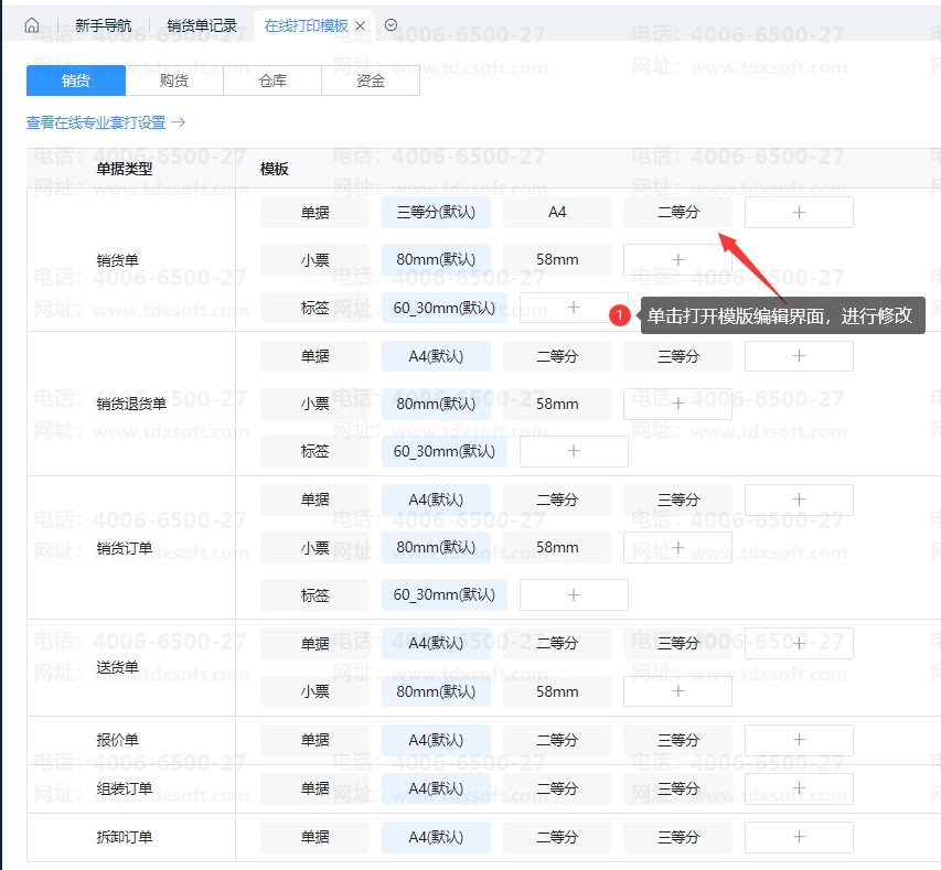 进销存系统已预置单据打印模板,包括“在线打印模板”和“在线专业套打模板”。同时,系统支持对这些预设模板进行修改编辑,也支持自定义设计专属的打印模板。