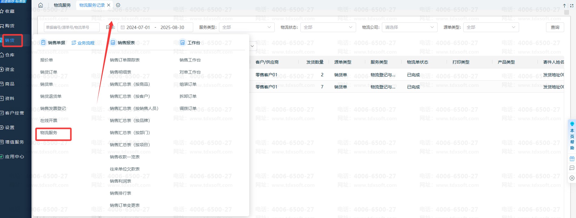 开具销货单后,可以一键下推生成物流单,然后选择打单发货/上门取件完成发货